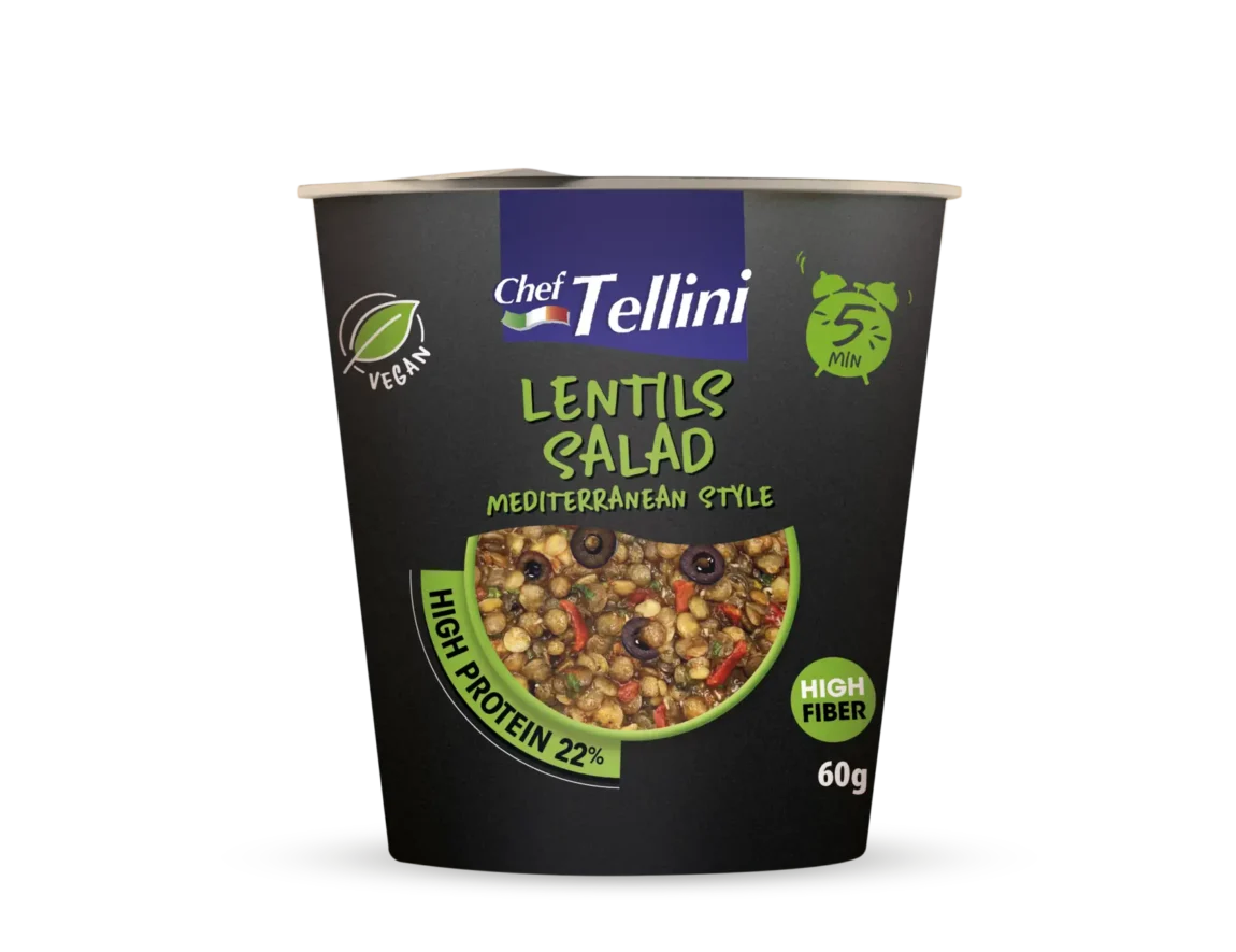 Ingredienti Proteine testurizzate di girasole 38,4%, lenticchie verdi precotte 30,8%, pomodoro 6,5%, zucchero di canna, fecola di patate, peperone rosso 2,9%, aromi, sale, lievito, cipolla 1,5%, carota 1,1%, zucchero caramellato (zucchero caramellato, maltodestrina), piante aromatiche e spezie, aglio, acidificanti: diacetato di sodio E262. Può contenere tracce di glutine, latte, uovo e soia. Peso 65 g Shelf life 12 mesi Valori nutrizionali ENERGIA1477 kJ - 350 kcalGRASSI4,4 gdi cui acidi grassi saturi0,6 gCARBOIDRATI39 gdi cui zuccheri14 gFIBRE13 gPROTEINE32 gSALE3,1 g Scopri tutta la gamma di Ready Meals Scopri di più